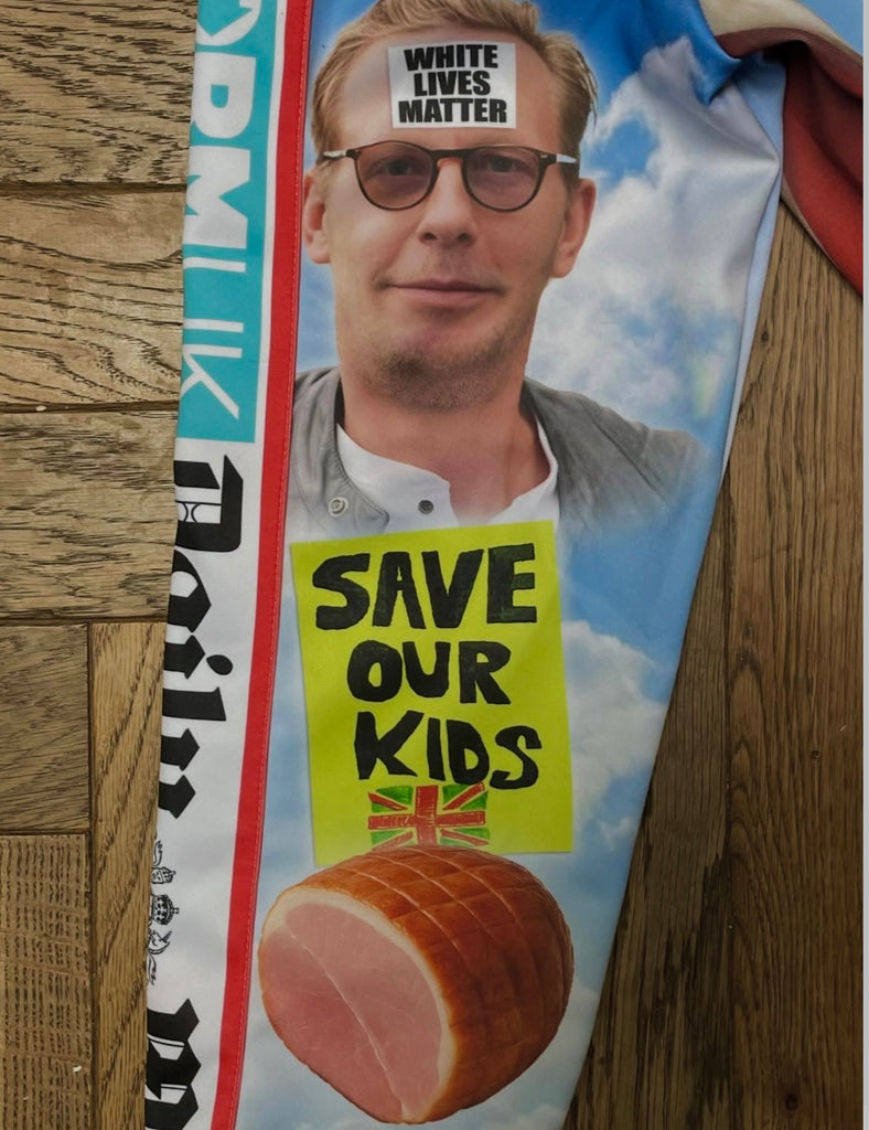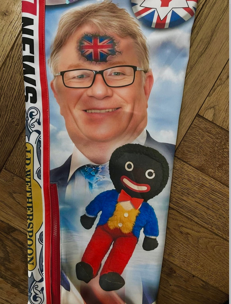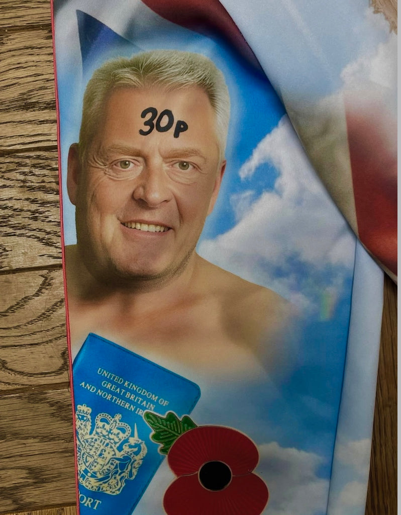 All your favourite Flag Jizzer faces and brands on one patriotic piece of leisure wear. The super absorbent material doubles up as a spunk shammy for when you get a bit too excited at Tommy or Nigel's next march.